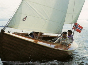 Dette er Åsgårdstrand seilforenings utloddingssnekke Havfruen som Fritz Gjerpen vant og ga tilbake til foreningen. Denne båter bygget av gran på eikespant, mens det vanlige er furu på eik.