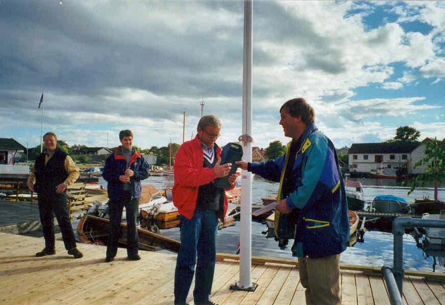 Det er ordfører Roar Tandberg som klipper, assistert av formann i seilforeningen Kjell Aarø
