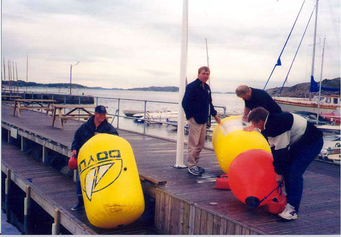 | Det lå mye forberedelser bak dette arrangementet. Her ser vi de siste utprøvinger av bøyer og lodder. |