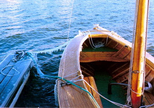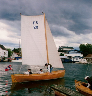Dette er Åsgårdstrand seilforenings utloddingssnekke Havfruen som Fritz Gjerpen vant og ga tilbake til foreningen. Denne båter bygget av gran på eikespant, mens det vanlige er furu på eik.